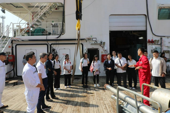 紧接着,全体党员在科考船会议室开展共建学习,专题学习习近平总书记致中山大学建校100周年贺信精神。