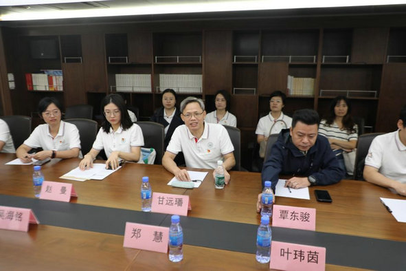 海洋科考中心党支部副书记叶玮茵主持会议,管理服务教职工党支部书记赵曼宣读了总书记贺信,党支部成员们共同回顾了中山大学百年发展历程,交流新起点上支部工作应着力实现的发展突破。
