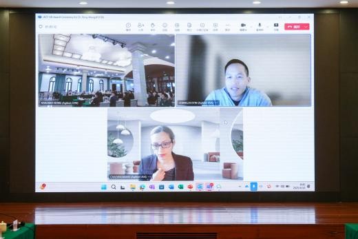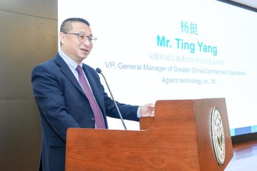 中山大学党委副书记张琪教授在致辞中介绍了我校近年来在生命科学、医学、环境等领域的突破性进展和产学研融合构建校企联合实验室等重要成果,并对双方联合探索校企合作新篇章提出了殷切期许。安捷伦副总裁兼大中华区业务总经理杨挺先生回顾了ACT-UR项目十年来的发展历程,并期待双方携手培养更多优秀人才,打造更加开放创新的科研平台,助力“双碳”目标的实现。安捷伦全球大学关系部经理Nahid Chalyavi与项目经理Dustin Chang博士也通过视频连线高度评价了王鹏教授的学术贡献,并对未来校企双方深化国际合作表达了憧憬。