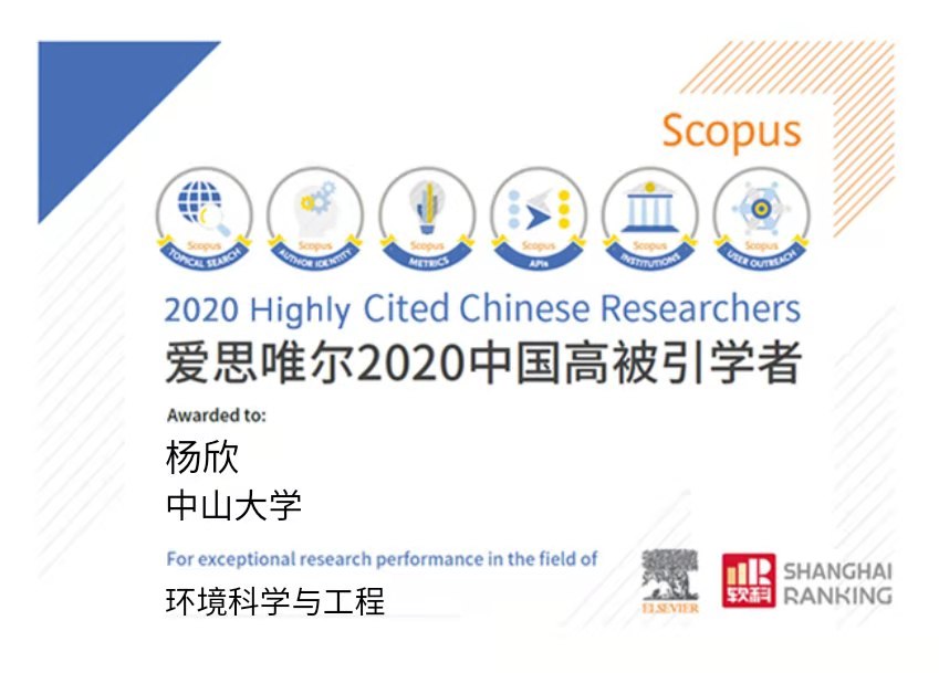 2021年4月,恭喜杨欣老师荣获“爱思唯尔2021中国高被引学者”!