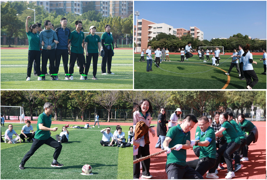 本届院运会的教工、校友组比赛设置了多人多足、托球接力跑、团体跳绳、点球大战以及拔河五个竞赛项目。运动场上,老师与校友们热情高涨,勇往直前。比赛进行过程中,老师和校友们一次次展现出默契的团队配合与出色的运动水平,现场的欢呼与助威更是体现了高昂的斗志与高涨的情绪。经过激烈的角逐,各项赛事圆满结束,颁奖典礼也在现场热情的氛围中举行。老师与校友们的比赛不仅体现出属于中大师生充满活力的精神风采,更激励着在校同学们勇往直前、勇攀高峰。