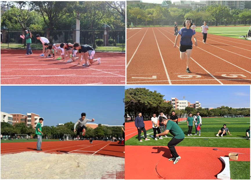 学生组比赛分为田赛、径赛以及趣味赛三大类别。赛场上,同学们全力拼搏、奋勇争先。跳远、铅球两个田赛项目充分展现出运动员的技术与力量。径赛项目的角逐中,既有展现同学们爆发力与协调性的100m200m,也有考验同学们耐力与策略的800m,更有体现团队配合水平的4×100m接力。运动员们在场上的顽强拼搏既诠释了更高、更快、更强、更团结的体育精神,也是环院学子们力争上游、全力以赴的品质体现。趣味赛中同学们齐心协力,在多人多足和拔河比赛上进行角逐,展示了线上娱乐城 学子的蓬勃朝气与活力。